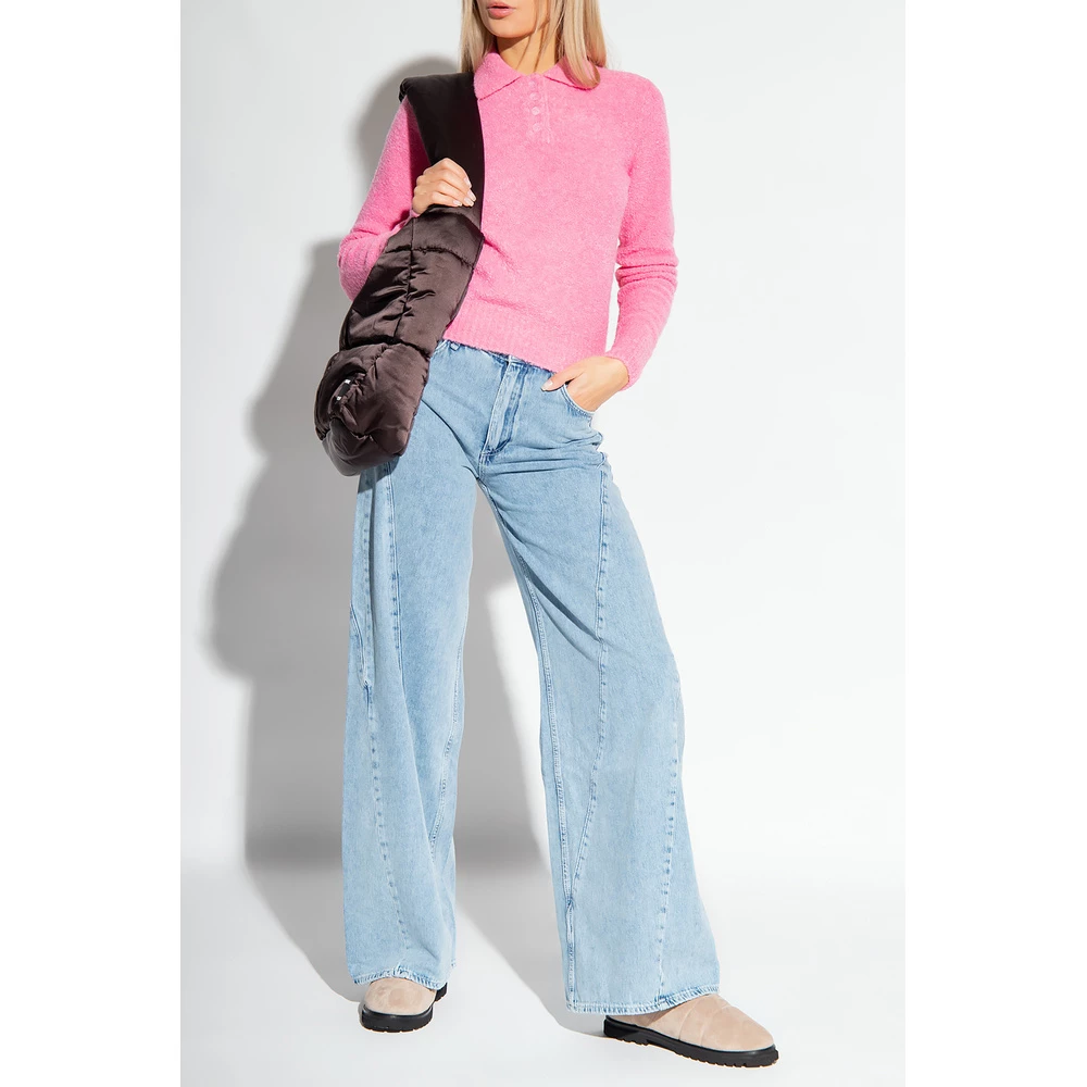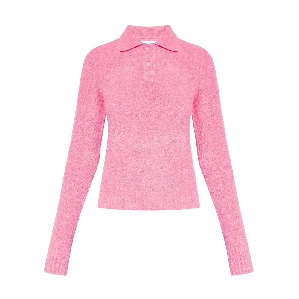 Pink ‘Jessi’ genser fra Samsoe Samsoe. Denne lange ermet designet er laget delvis fra alpakka og har en knappet krage og ribbet kanter.