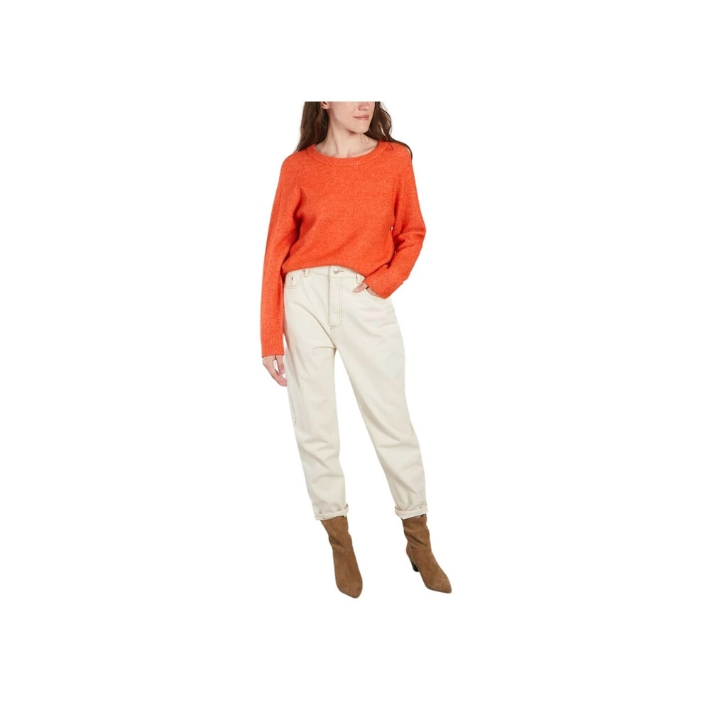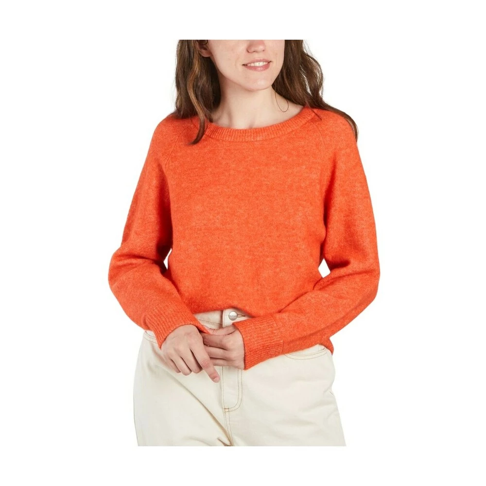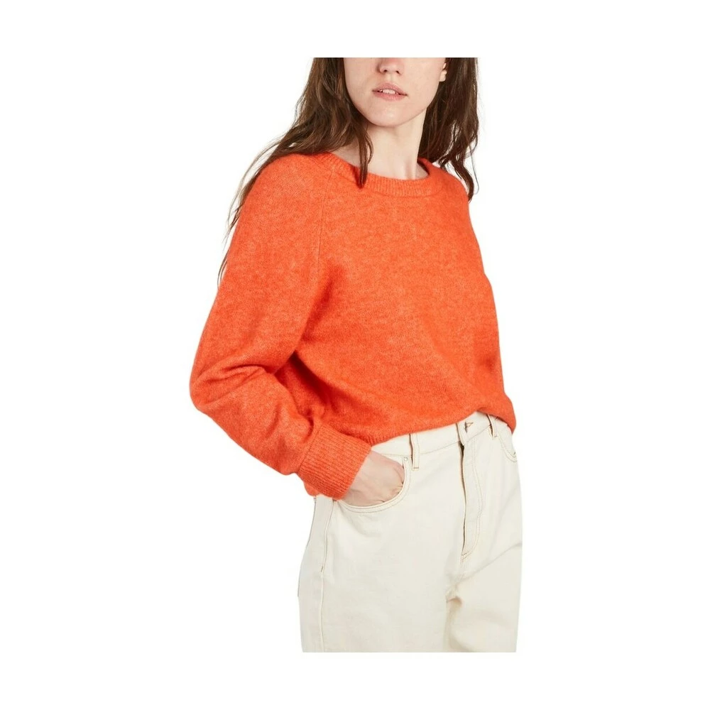 Strikket genser laget av mykt alpakka og merino ullgarn – oransje farge – stor rund hals – raglan ermer