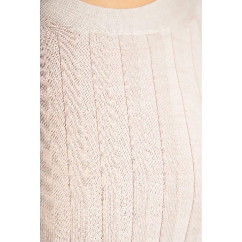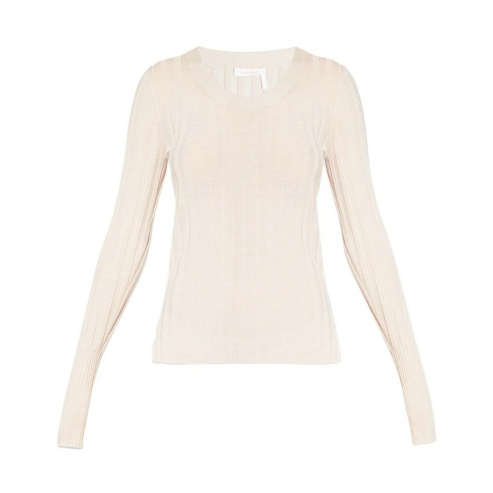 Kremetopp fra se av Chloé. Denne stilen er laget av en ullblanding med en ribbet strikket, og har en formpassende silhuett og en elastisk rund nakke og lange ermer.