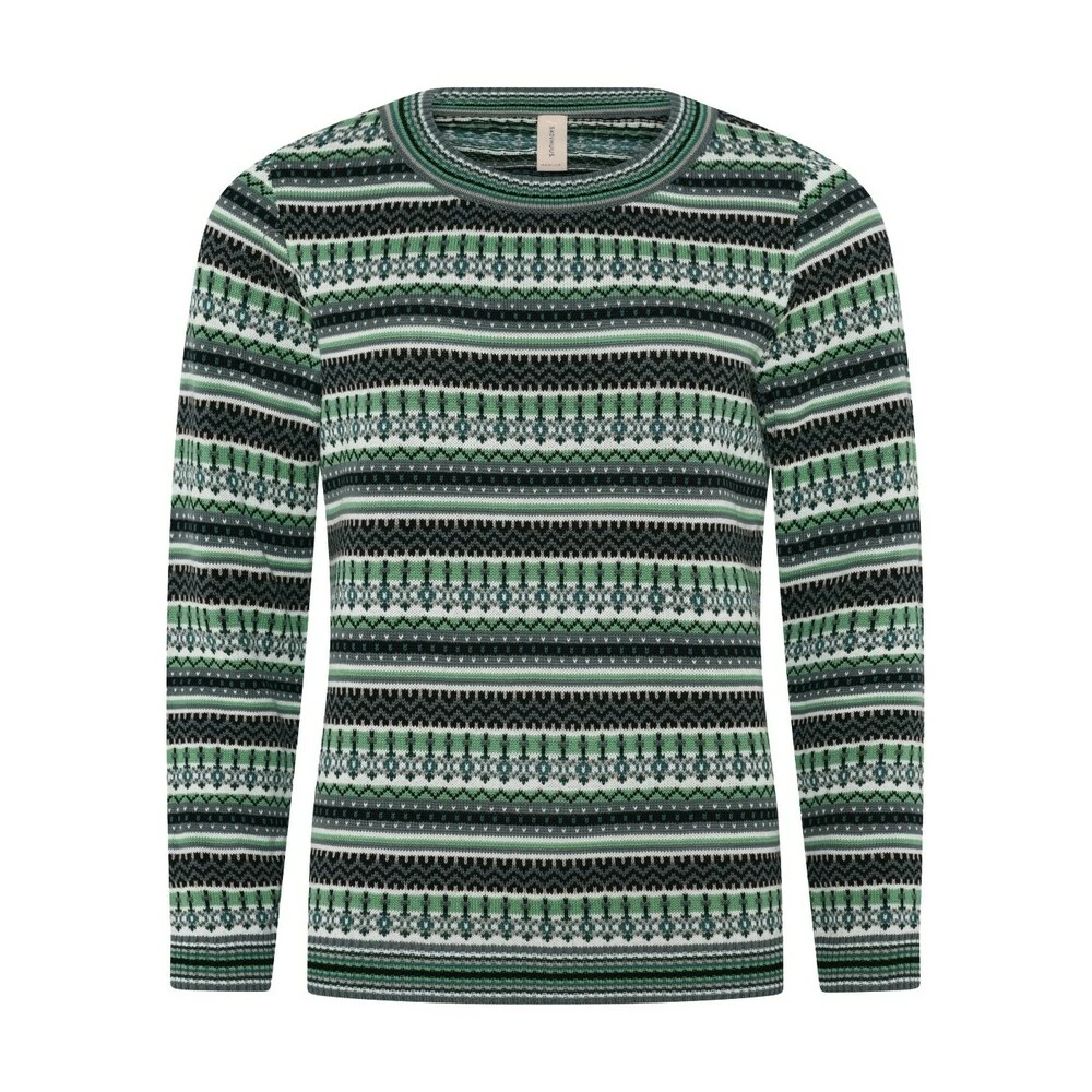 Jaquard strikket genser fra Skovhuus! Genseren har regular passform, rund hals og lange armer. Genseren er normal i størrelsen. Kvalitet: 50% bomull 50% acryl jaquard knit o-neck pullover 2832 5095 seaweed green skovhuus genser