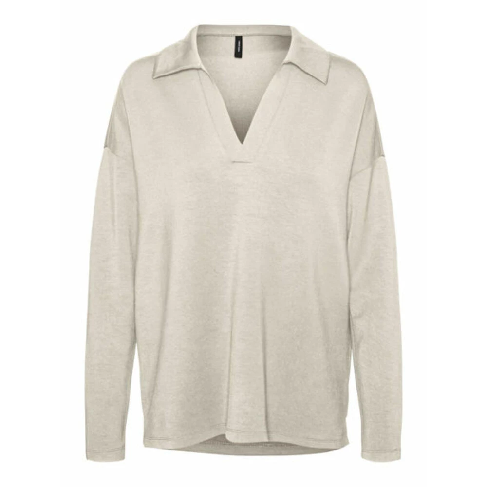 VMSILKY L/S SLIT POLO TOP – Myk genser med V-hals og krave – Litt lengre og videre modell – Splitt i sidene nederst i linningen – Innhold: 60% modal, 40% polyester – Farge: Birch