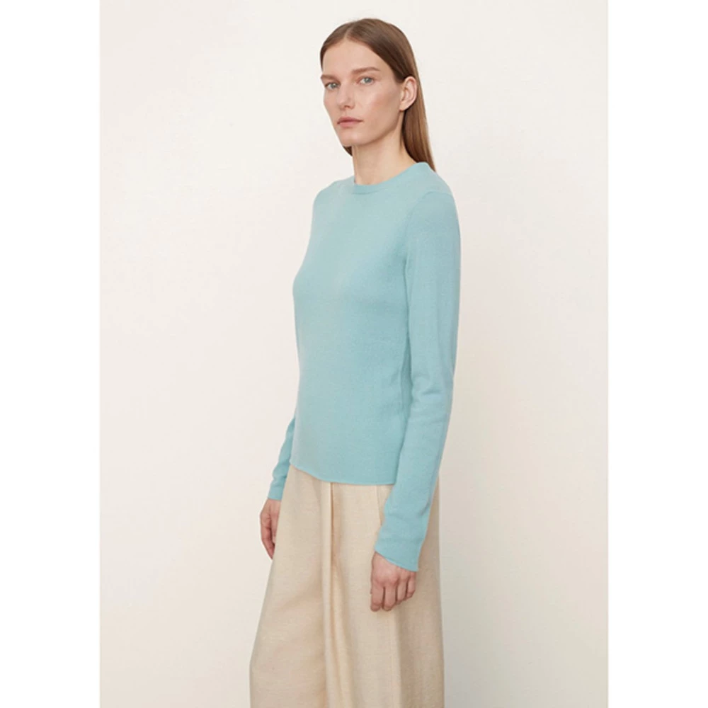Enkel, smal genser med rund hals og lange ermer. Tynn kvalitet i 100% cashmere. Myk og god. Anvendelig basegenser med en fresh farge som er superfin til jeans, men også velkledd til dressbukser på jobb. Detaljer Modell: Clean Edge Pullover Farge: Pale Mineral Materiale: 100% Cashmere Vask: Maskinvask 30 grader i vaskepose