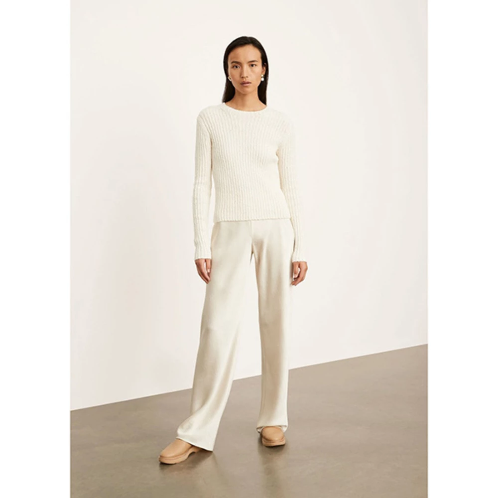 Genser i lin og bomull i ribbestrikk. Rund hals og lange, smale ermer. KroppsnÊr, stretchy passform og relativt kort. Nett til skjÞrt, samt bukser og shorts med litt hÞyde i livet. Normal i stÞrrelsen. Velg din vanlige stÞrrelse. Detaljer Modell: Textured Rib Crew Farge: Offwhite Materiale: 70% Bomull, 30% Lin Vask: Maskinvask 30 grader i vaskepose. TÞrkes flatt.